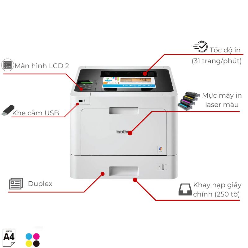 Thông số kỹ thuât: Máy in laser màu Brother HL-L8260CDN