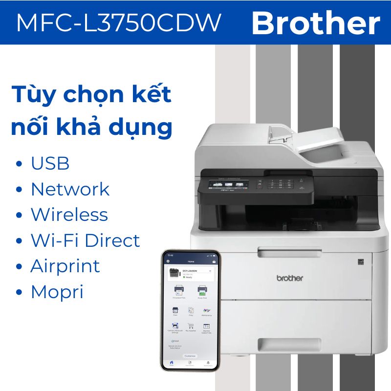 - Kết nối thông minh: WiFi, NFC, AirPrint và Brother iPrint&Scan