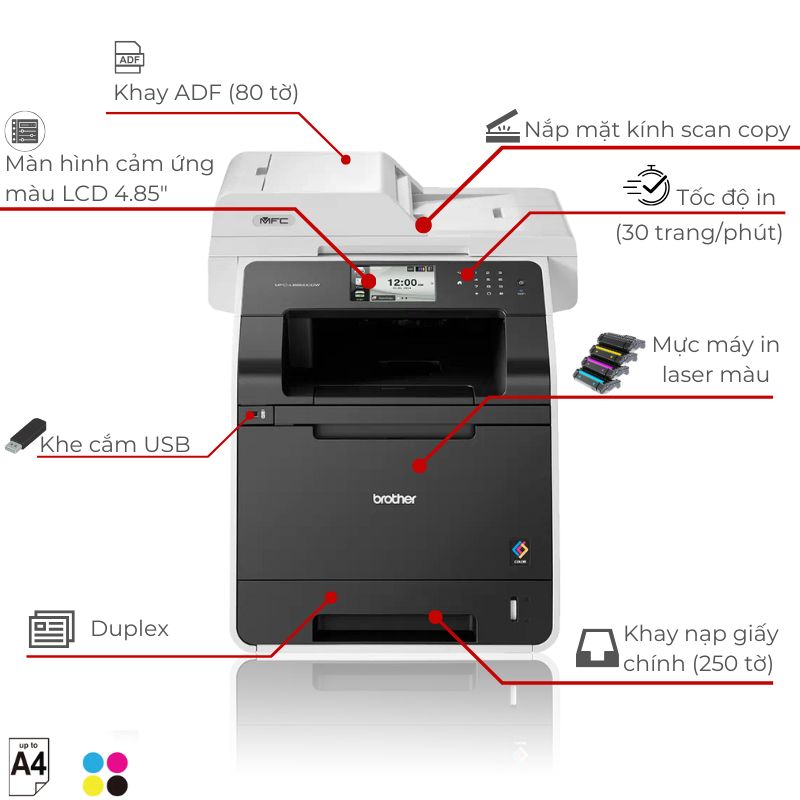 Thông số kỹ thuât: Máy in laser màu đa năng Brother MFC-L8850CDW