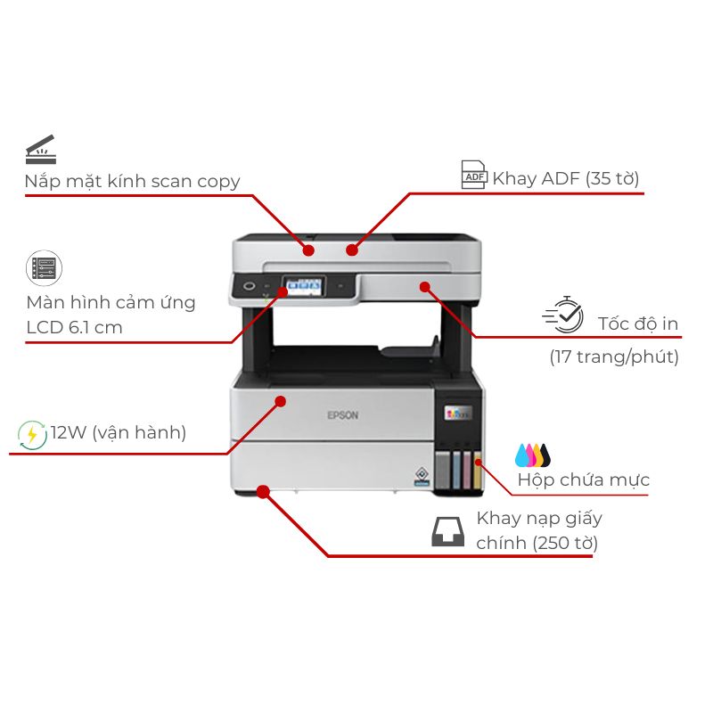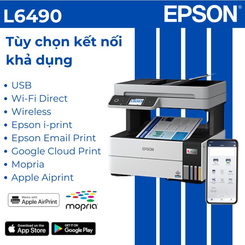 • Kết nối thông minh: Wi-Fi Direct, in từ điện thoại qua Epson iPrint