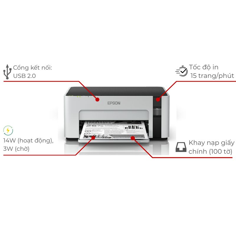 Thông số kỹ thuât: Máy in phun màu Epson EcoTank M1120
